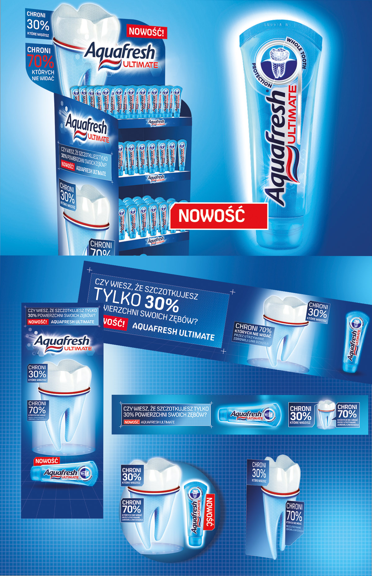 Projekt standu i materiałów POS dla GlaxoSmithKline, producenta pasty do zębów Aquafresh.